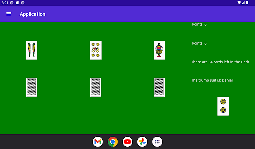 This application wants to be a trumps simulator for 2 players, without multiplayer with Neapolitan cards.